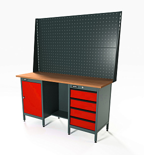 Верстак серии Industrial, 1500 мм, фанера, экран 1000, серый RAL 7016