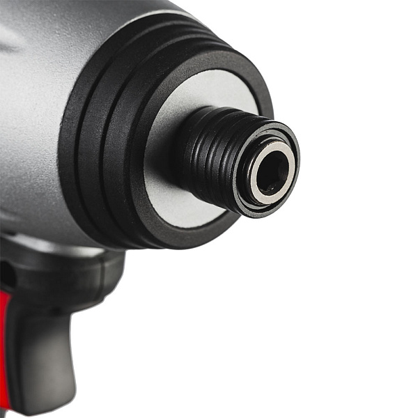 Универсальный патрон имеет форму шестигранника размером 1/4" (6.35 мм), что позволит использовать большинство насадок для винтовертов. Ударная функция и максимальный крутящий момент 150 Н·м позволяет заворачивать крепеж даже большого размера.