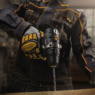 Эргономичный корпус и прорезиненная рукоять с 3D текстурой обеспечивает удобный хват и не позволит выскользнуть инструменту даже при работе в перчатках. Мы сделали дрель-шуруповерт максимально легкой и компактной: вес с батареей всего 1.3 кг. Это не только сделает продолжительную работу проще, но и позволит использовать его в труднодоступных местах. Корпус дрели усилен дополнительными ребрами жесткости для увеличения прочности. Полностью металлическая двухсторонняя клипса позволяет легко и быстро повесить инструмент на ремень.