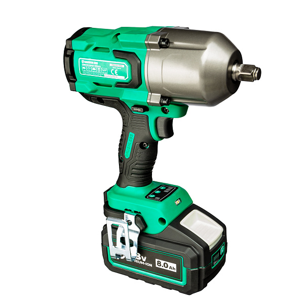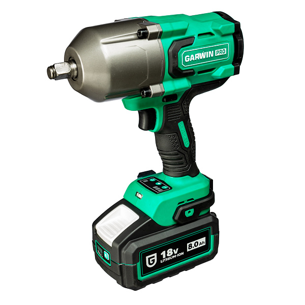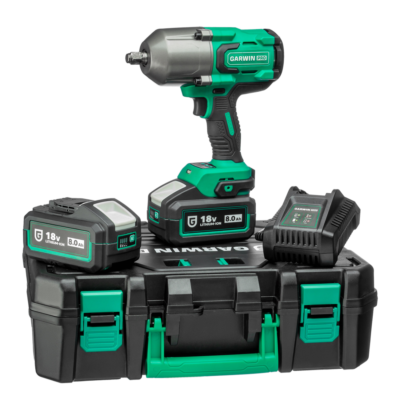 Аккумуляторный гайковёрт от GARWIN PRO поставляется в пластиковом кейсе в комплекте с двумя литий-ионными аккумуляторами ёмкостью 8 Ач и зарядным устройством.