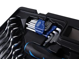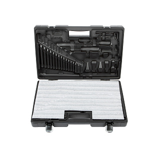 Пластиковый кейс. Инструмент поставляется в прочном пластиковом кейсе, что облегчает его хранение и транспортировку. В верхней части кейса есть отдельный отсек с крышкой, который можно использовать для хранения крепежа.