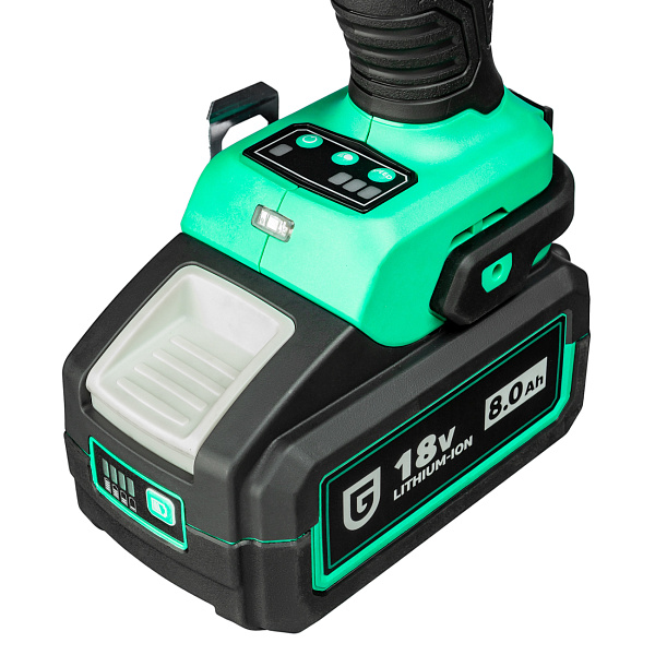 Единая аккумуляторная система. Позволяет устанавливать АКБ на все аккумуляторные инструменты линейки 18 В от бренда GARWIN PRO.