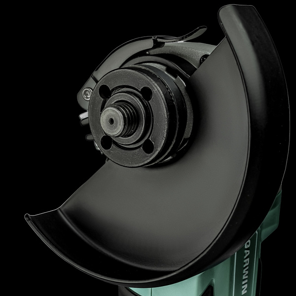 Бесключевой защитный кожух. Регулировка положения кожуха происходит без ключа, с помощью эксцентриковой клипсы. Это позволяет максимально быстро настроить инструмент под требуемый тип работ.