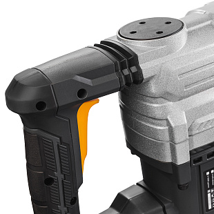 Эргономичный корпус и прорезиненная дополнительная рукоятка позволяют надежно удерживать перфоратор и обеспечивают комфортную работу. Между корпусом и рукояткой инструмента расположена специальная антивибрационная накладка. Она снижает негативное воздействие вибрации на руки оператора. Вертикальное расположение мотора отличается компактностью и хорошим охлаждением.