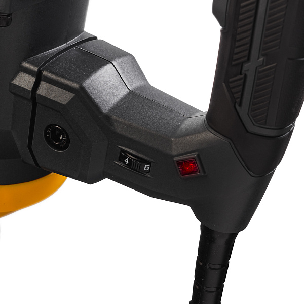 Эргономичный корпус и прорезиненная дополнительная рукоятка позволяют надежно удерживать перфоратор и обеспечивают комфортную работу. Между корпусом и рукояткой инструмента расположена специальная антивибрационная накладка. Она снижает негативное воздействие вибрации на руки оператора. Вертикальное расположение мотора отличается компактностью и хорошим охлаждением. Световая индикация подключения к сети обеспечивает удобство для пользователя.