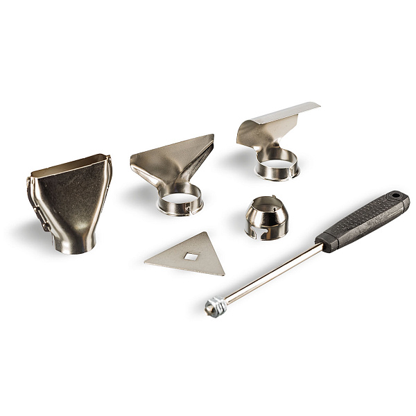 Для разных целей предусмотрены два режима работы с разной температурой. Максимальная температура нагрева — 600°С. В комплекте поставки скребок для удаления лакокрасочного покрытия и 4 насадки: