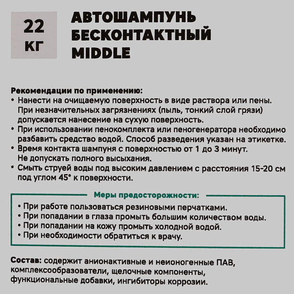 Автошампунь бесконтактный MIDDLE GARWIN PRO 22 кг