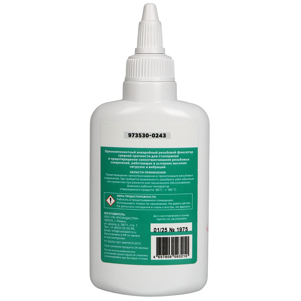 Этот фиксатор резьбы средней прочности — идеальное решение для соединений, требующих баланса между надежной фиксацией и возможностью обслуживания. Обеспечивает стабильную работу в условиях вибрации и перепадов температур.