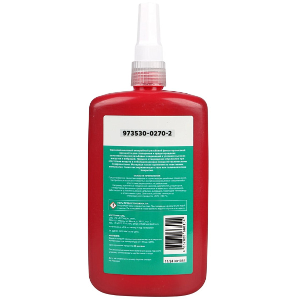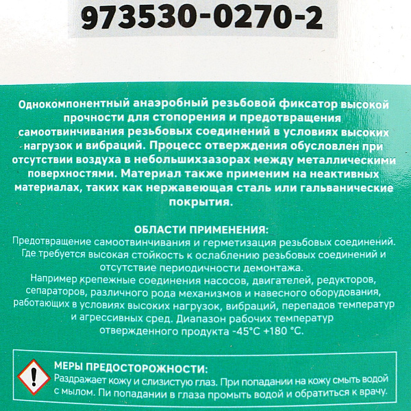 Фиксатор резьбы высокой прочности (зеленый) GARWIN PRO 250мл — это профессиональный фиксатор резьбового соединения премиального класса. Используется для надежного стопорения резьбовых соединений в условиях экстремальных нагрузок и вибраций.