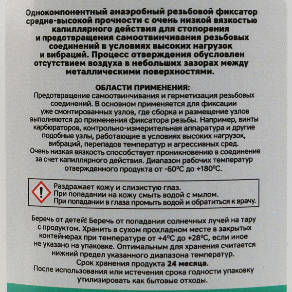 Фиксатор резьбы низкой вязкости, проникающий GARWIN PRO (зеленый) 50 мл — это профессиональный низковязкий фиксатор резьбы с усиленным капиллярным эффектом. Используется для надежной фиксации резьбовых соединений в уже собранных узлах и труднодоступных местах.