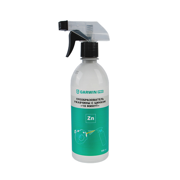 Преобразователь ржавчины с цинком ""10 минут"" GARWIN PRO 973520-1500 — это быстродействующий преобразователь коррозии в удобной аэрозольной упаковке 500 мл. Используется для эффективного удаления ржавчины и создания защитного цинкового слоя на металлических поверхностях.