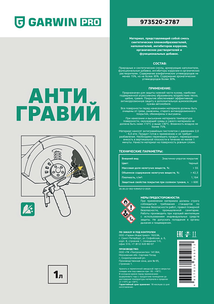 Мастика битумная антигравий GARWIN PRO ПЭТ, 1000 мл - 1