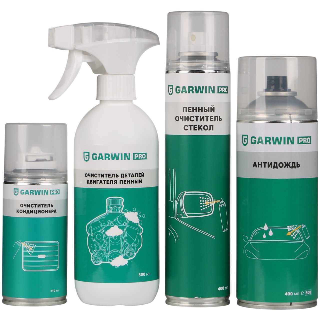 Промонабор "Автохимия 4" от GARWIN PRO — это комплексный набор профессиональных средств для ухода за автомобилем. Включает 4 специализированных продукта для очистки стекол, защиты от дождя, дезинфекции кондиционера и чистки двигателя.
