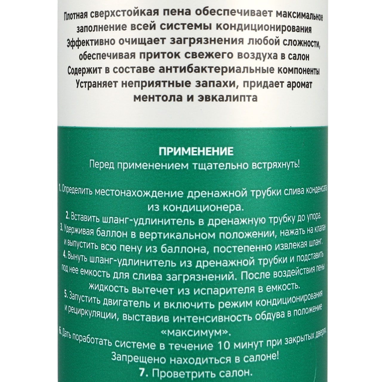 Устранение запахов: Очиститель для кондиционеров эффективно устраняет неприятные запахи, освежая воздух и придавая ему аромат ментола и эвкалипта.