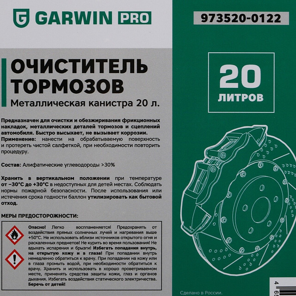 Очиститель тормозов GARWIN PRO, металл. канистра 20 л, 973520-0122