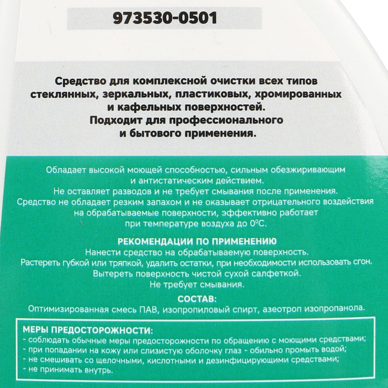 Безопасен для всех типов поверхностей: стекла, зеркал, пластика, хрома и кафеля, не повреждает покрытия