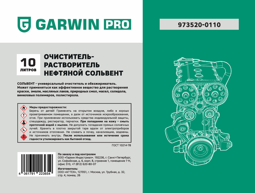 Очиститель-растворитель нефтяной СОЛЬВЕНТ GARWIN PRO, 10 л