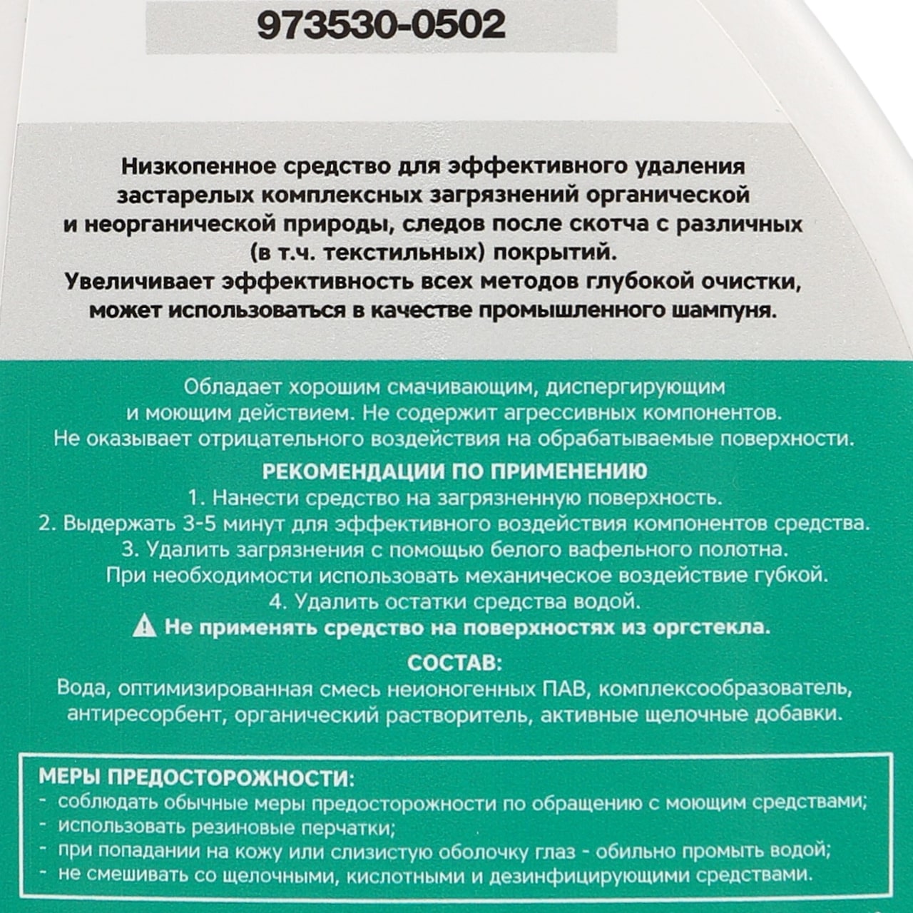 Низкопенная основа позволяет использовать средство как шампунь или пятновыводитель для различных материалов