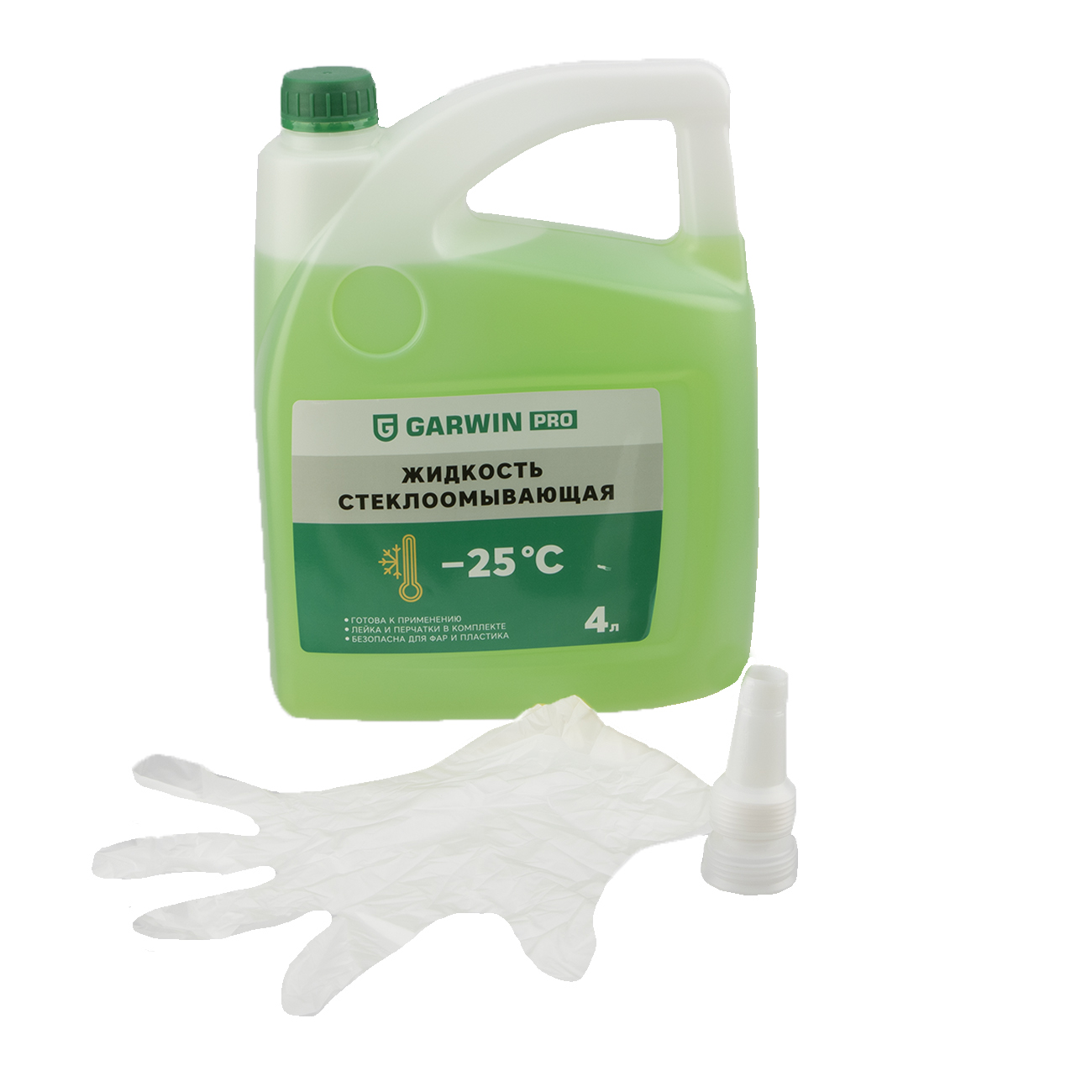Жидкость стеклоомывателя зимняя -25°C, 4 л, GARWIN PRO, артикул 973520-0425 — это профессиональное средство для очистки стёкол и фар автомобиля в суровых зимних условиях. Незамерзающая жидкость обеспечивает эффективное удаление загрязнений даже при экстремально низких температурах до -25°C, что делает её незаменимой для безопасного вождения в зимний период.