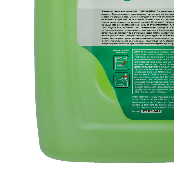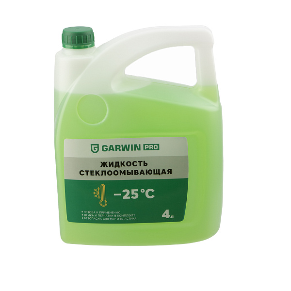 Жидкость стеклоомывателя зимняя -25°C, 4 л, GARWIN PRO, артикул 973520-0425 — это профессиональное средство для очистки стёкол и фар автомобиля в суровых зимних условиях. Незамерзающая жидкость обеспечивает эффективное удаление загрязнений даже при экстремально низких температурах до -25°C, что делает её незаменимой для безопасного вождения в зимний период.