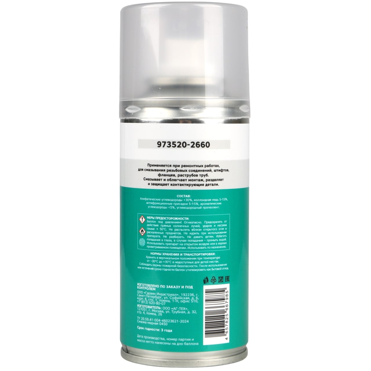 Медные частицы в составе предотвращают сваривание и прикипание деталей, значительно облегчая последующий демонтаж резьбовых соединений.