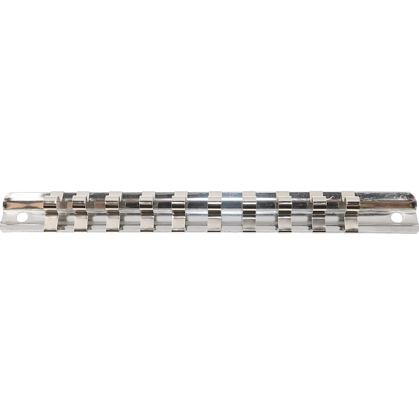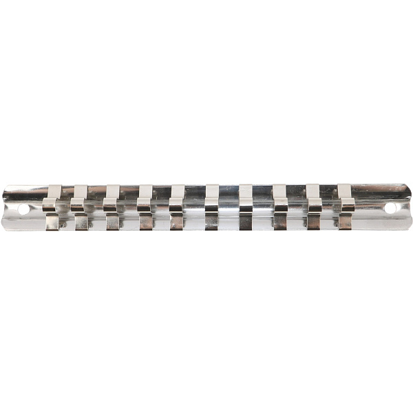 Держатель-линейка с отверстиями по краям позволяет прикрепить набор торцевых головок к любой рабочей поверхности.