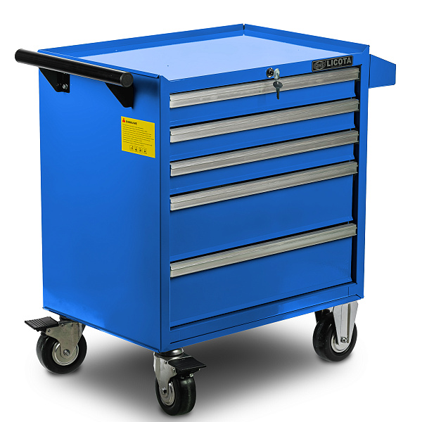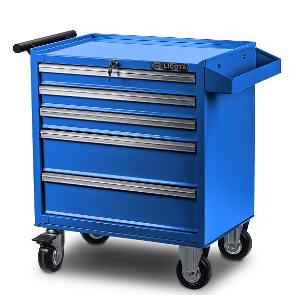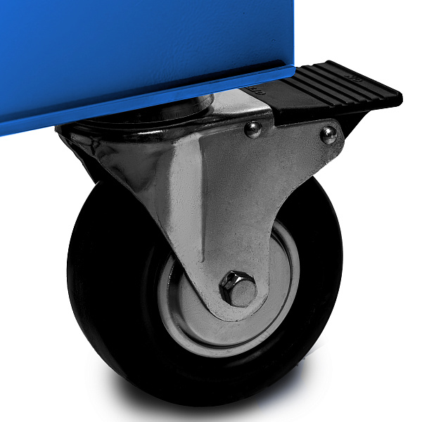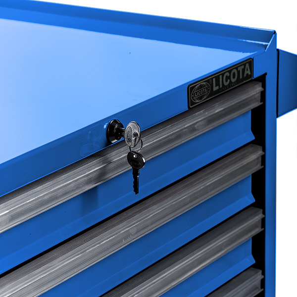 Система Easy lock предотвращает самопроизвольное открытие полок. Центральный замок предусмотрен для блокировки всех полок одновременно. Съёмный карман на корпусе тележки предназначен для хранения емкостей с техническими жидкостями.