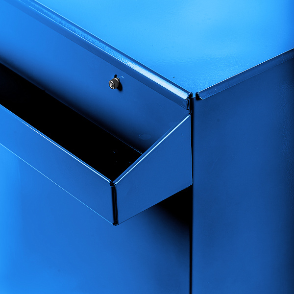 Изготовлена из цельного металлического листа толщиной 1,2 мм. Ящики из стали толщиной 1 мм способны выдержать нагрузку до 70 кг.