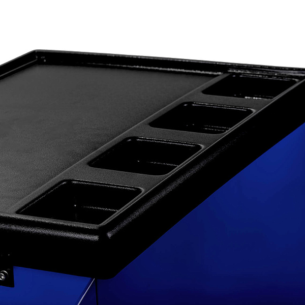 Тележка инструментальная с карманом, cо столешницей, 5 полок, сине-серая