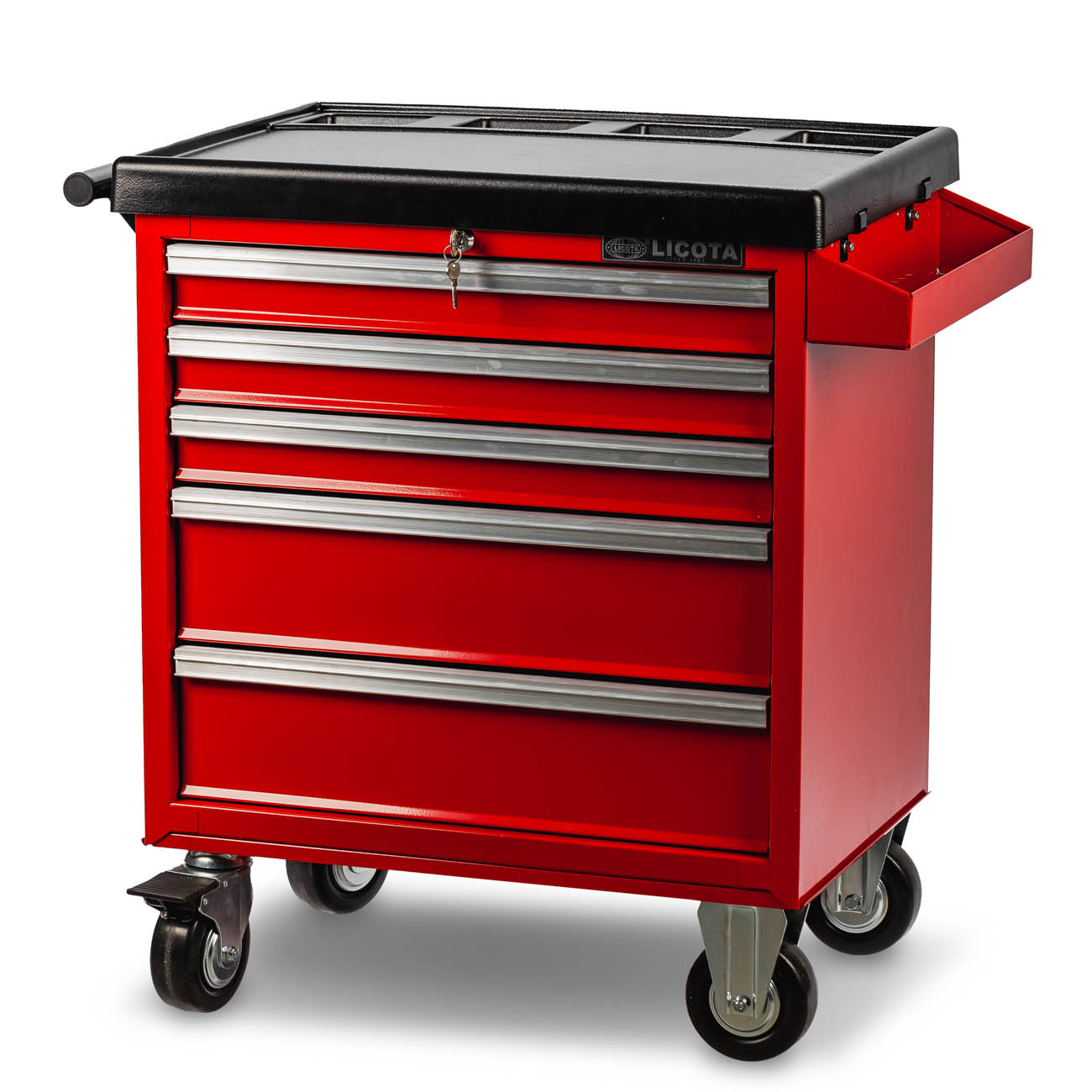 Система Easy lock предотвращает самопроизвольное открытие полок. Центральный замок предусмотрен для блокировки всех полок одновременно. Съёмный карман на корпусе тележки предназначен для хранения емкостей с техническими жидкостями.