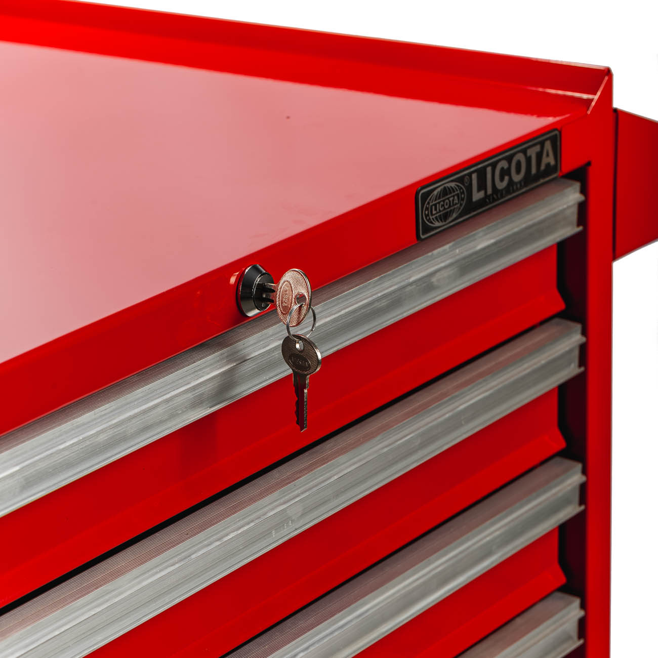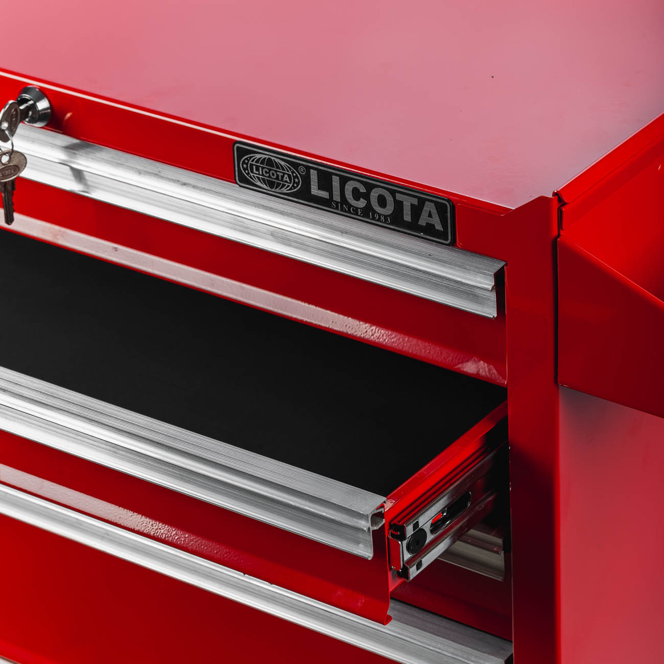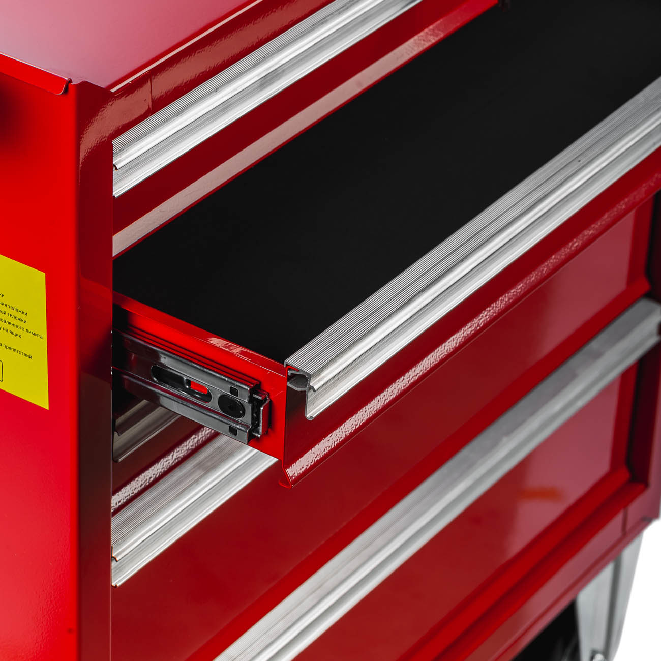 Система Easy lock предотвращает самопроизвольное открытие полок. Центральный замок предусмотрен для блокировки всех полок одновременно. Съёмный карман на корпусе тележки предназначен для хранения емкостей с техническими жидкостями.