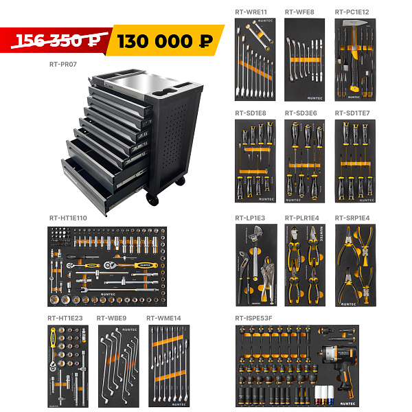 | RT-PC1E12 | Набор ударно-рычажного инструмента RUNTEC в ложементе EVA, 12 предметов, 185x375x40 мм | |