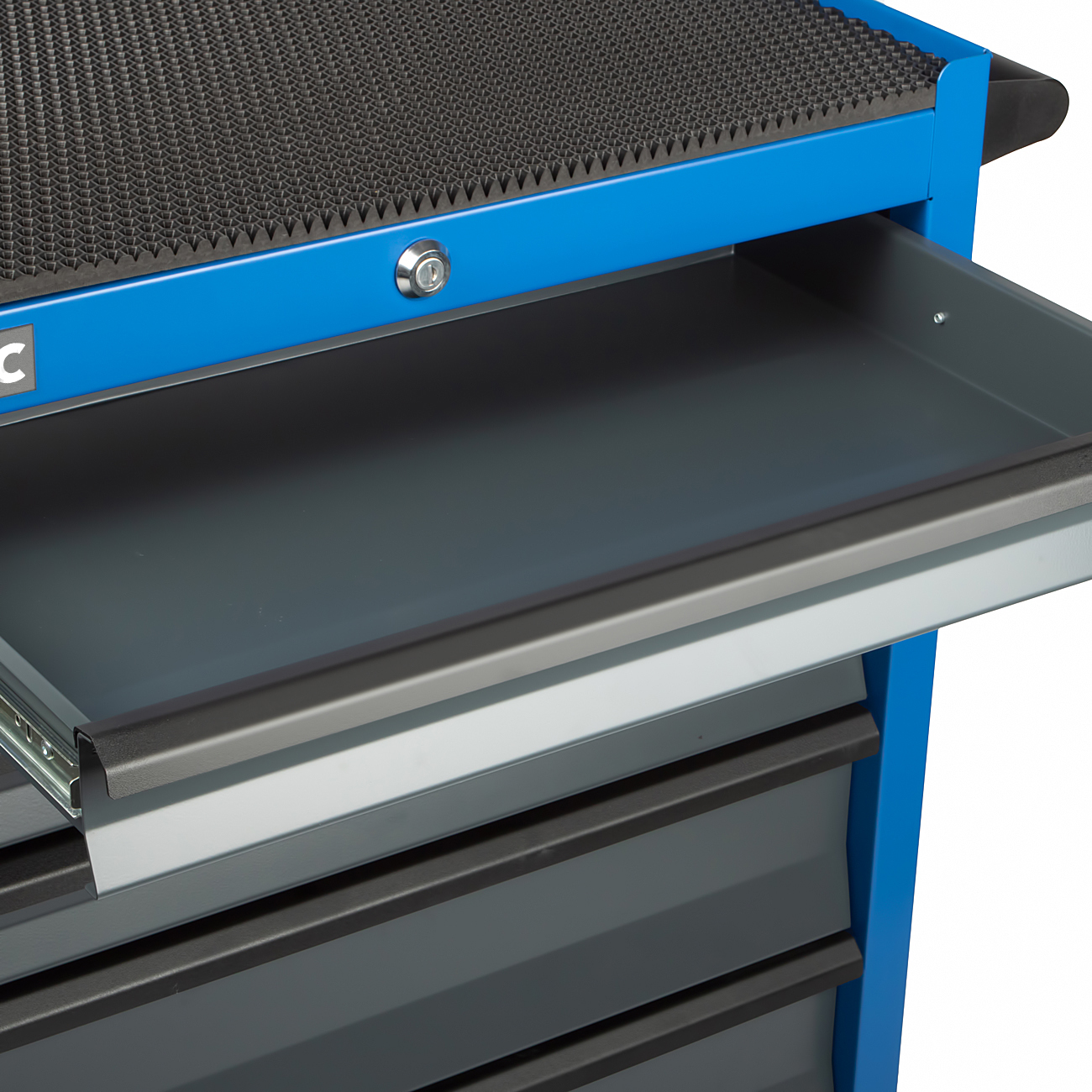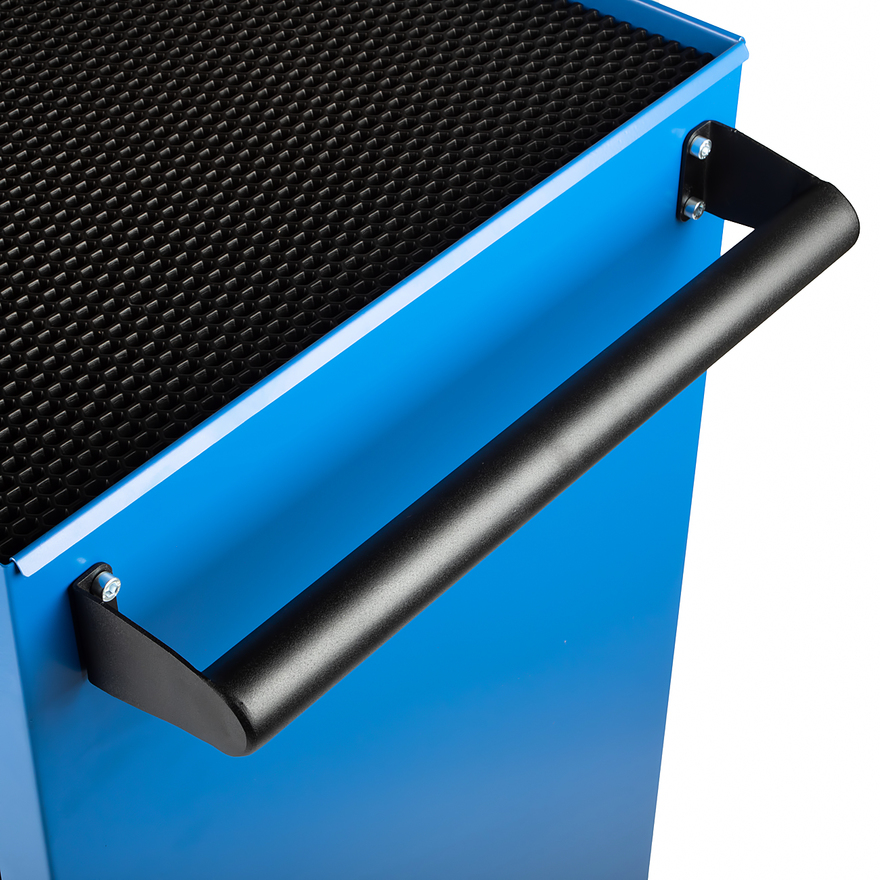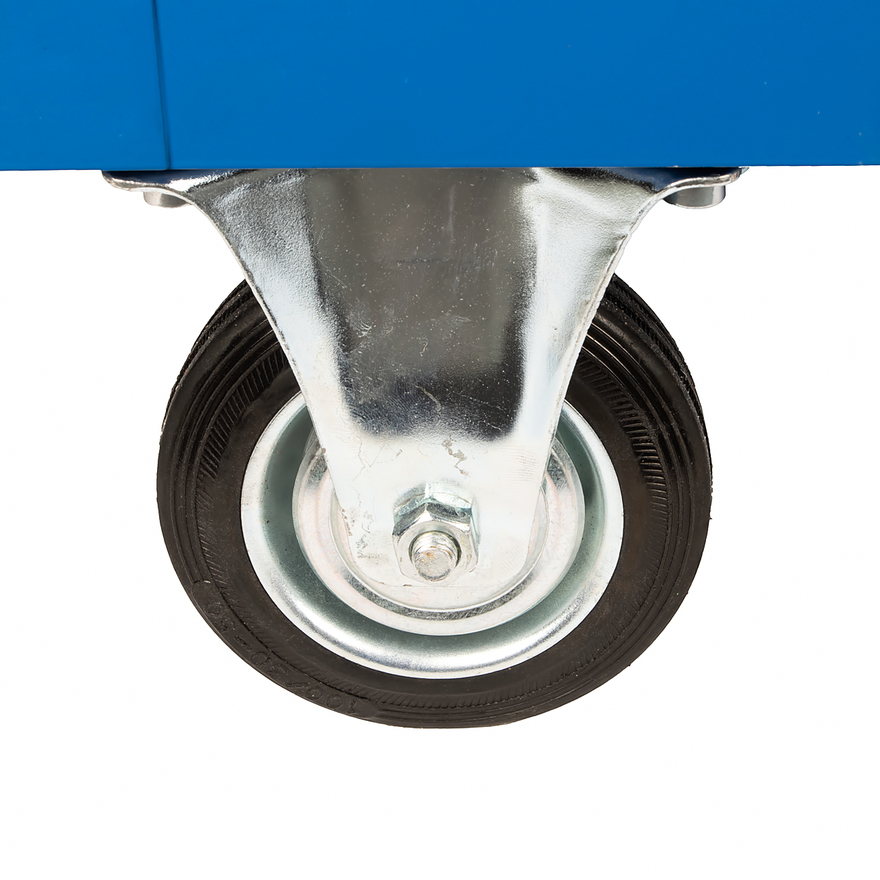 Максимальная нагрузка — 200 кг. Текстурные ручка тележки для удобного использования в перчатках. Центральный замок для защиты содержимого от несанкционированного доступа.
