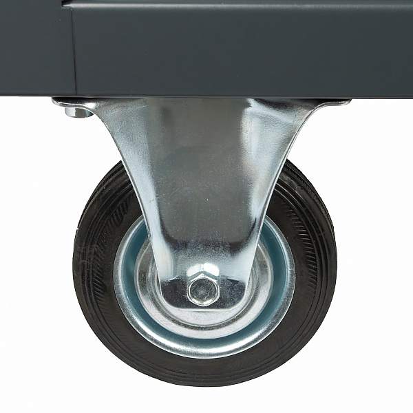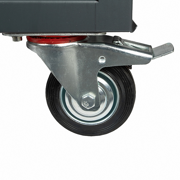 Максимальная нагрузка — 200 кг. Текстурные ручка тележки для удобного использования в перчатках. Центральный замок для защиты содержимого от несанкционированного доступа.