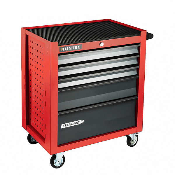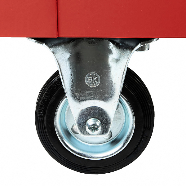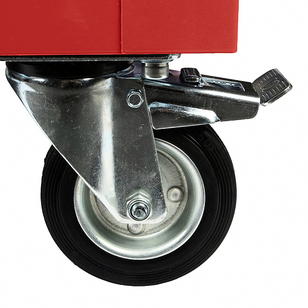 Выдвижные ящики разного размера для организации инструмента по категориям. Максимальная нагрузка — 350 кг, подходит для тяжёлого оборудования и оснастки. Функция блокировки колёс предотвращает самопроизвольное движение тележки при работе. Текстурные ручка тележки для удобного использования в перчатках. Центральный замок для защиты содержимого от несанкционированного доступа. Тележка выполнена из сварной рамы и листового каркаса из металла толщиной 1.2 мм, что гарантирует прочность конструкции и долговечность в условиях интенсивной эксплуатации.