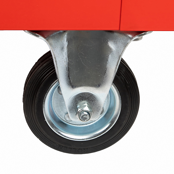 Выдвижные ящики разного размера для организации инструмента по категориям. Максимальная нагрузка — 350 кг, подходит для тяжёлого оборудования и оснастки. Функция блокировки колёс предотвращает самопроизвольное движение тележки при работе. Текстурные ручка тележки для удобного использования в перчатках. Центральный замок для защиты содержимого от несанкционированного доступа. Тележка выполнена из сварной рамы и листового каркаса из металла толщиной 1.2 мм, что гарантирует прочность конструкции и долговечность в условиях интенсивной эксплуатации.