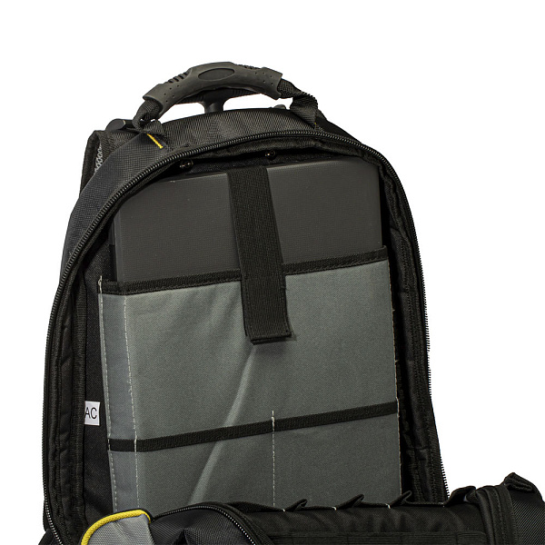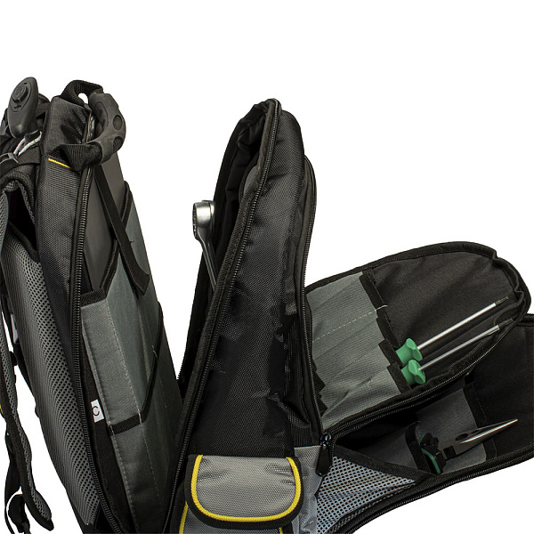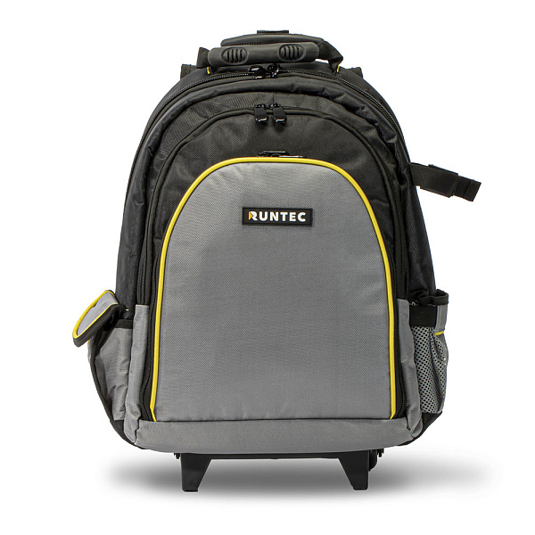 Рюкзак RUNTEC GA-BP01 идеально подходит для переноса и хранения инструмента, строительных принадлежностей и средств индивидуальной защиты. 27 карманов и 6 эластичных петель позволяют удобно и аккуратно разместить весь необходимый инструмент. Отдельный внутренний карман для ноутбука или планшета диагональю до 15”. Рассчитан на вес до 32 кг. Благодаря колесикам и телескопической ручке рюкзак легко превращается в тележку. Чтобы колесики не пачкали одежду предусмотрена откидная мягкая подкладка на спинке.