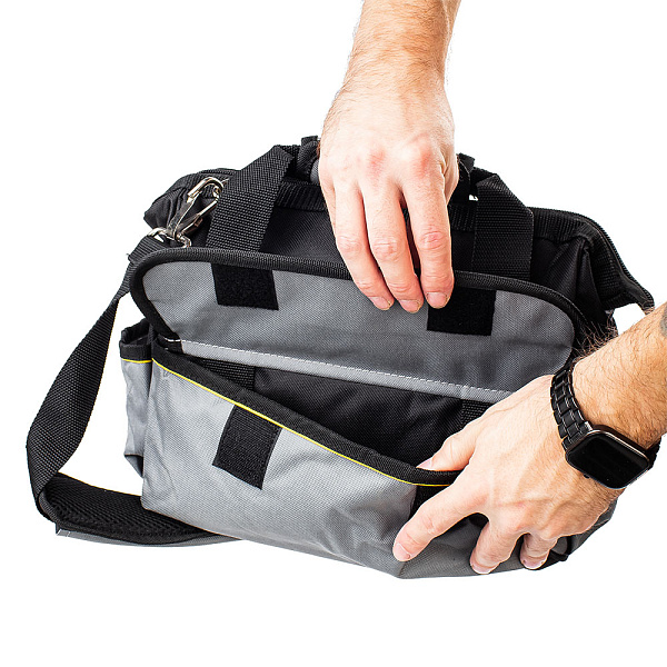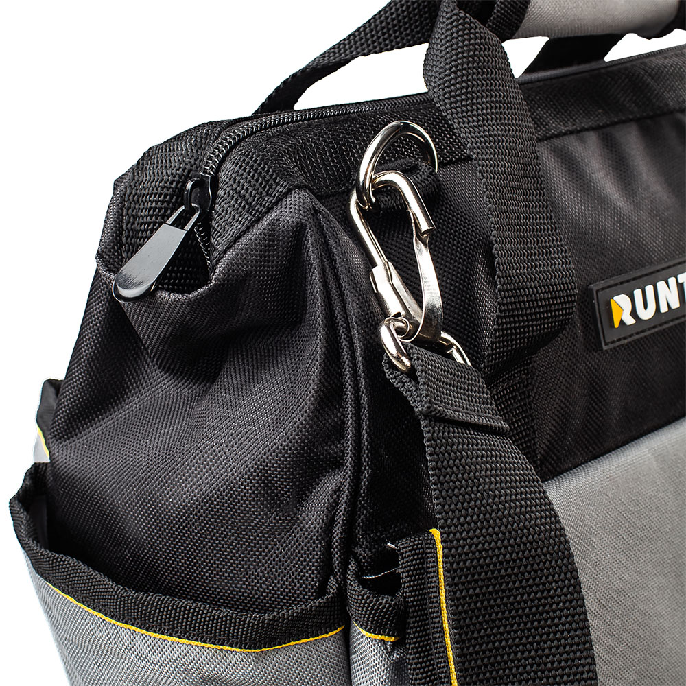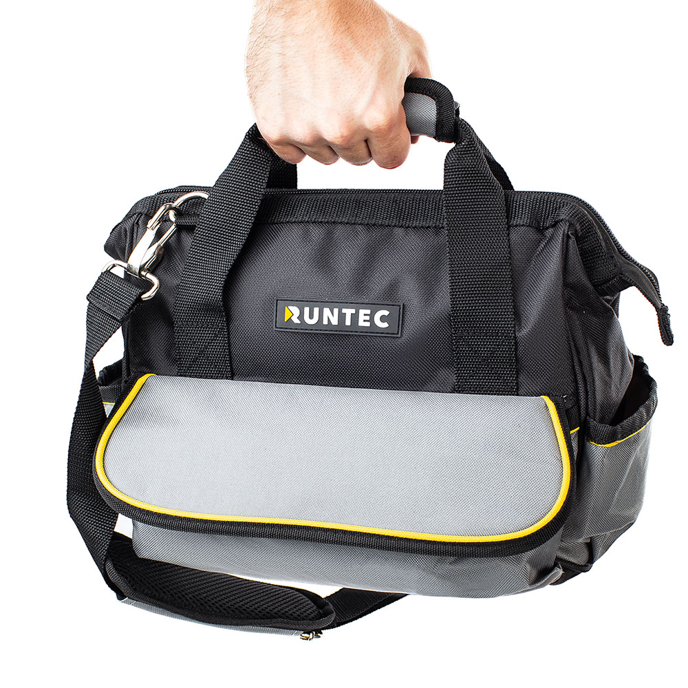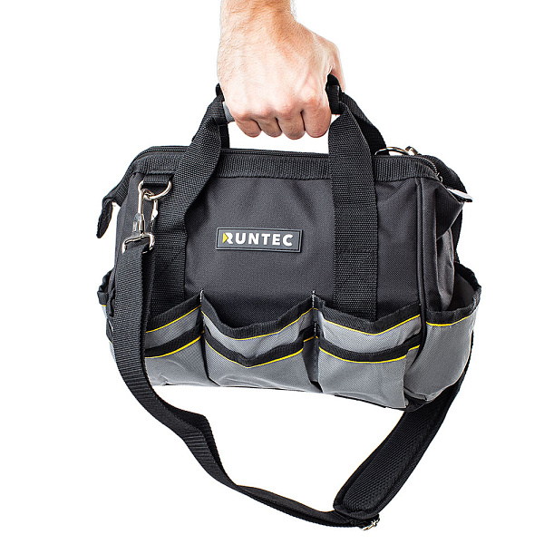 Сумка для инструмента RUNTEC RT-TB11 идеально подходит для переноса и хранения инструмента, строительных принадлежностей и средств индивидуальной защиты. 5 открытых внешних карманов и 1 на застежке-липучке, а также большой отсек с внутренними карманами позволяют удобно и аккуратно разместить весь необходимый инструмент.