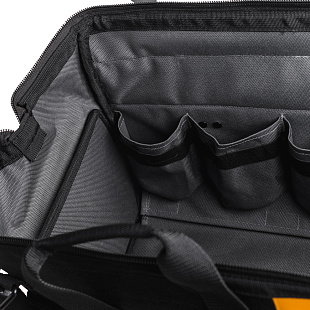 Сумка для инструмента RUNTEC RT-TB14 идеально подходит для переноса и хранения инструмента, строительных принадлежностей и средств индивидуальной защиты. 6 внешних карманов на застежке-липучке, а также большое внутреннее отделение со съемной перегородкой позволяют удобно и аккуратно разместить весь необходимый инструмент.