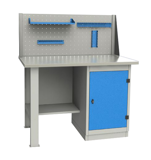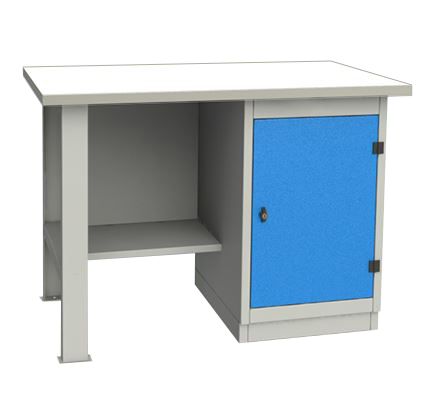 Верстак однотумбовый, тумба с дверцей с оцинкованной столешницей 1200 мм (синий RAL5005)