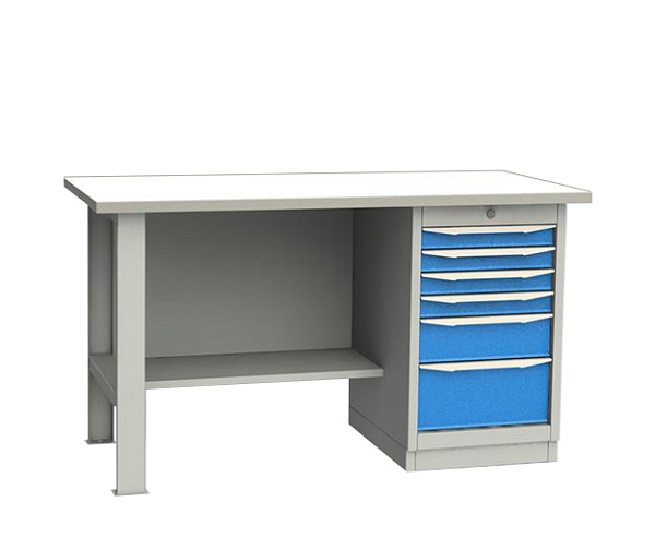 Верстак однотумбовый, тумба с 6 ящиками с оцинкованной столешницей 1500 мм (синий RAL5005)