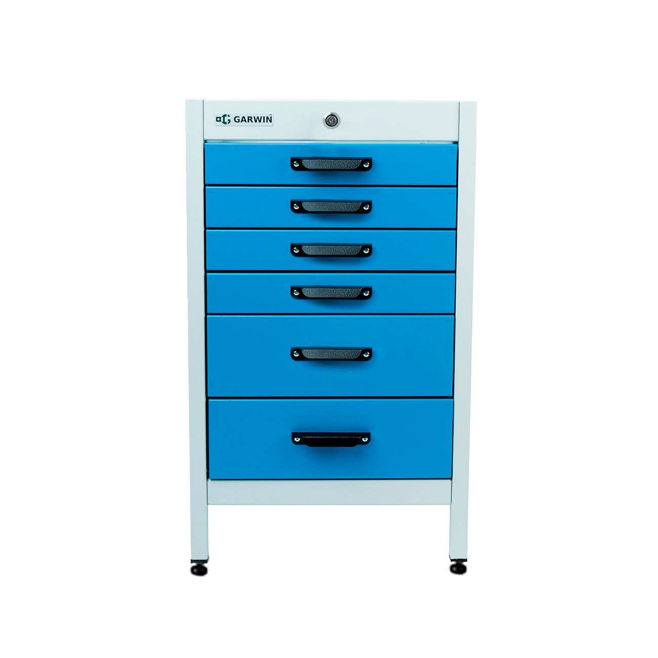 Тумба 6 ящиков Standart, без крышки, светло-серый каркас, светло-синие ящики, 7035+5015 - 1