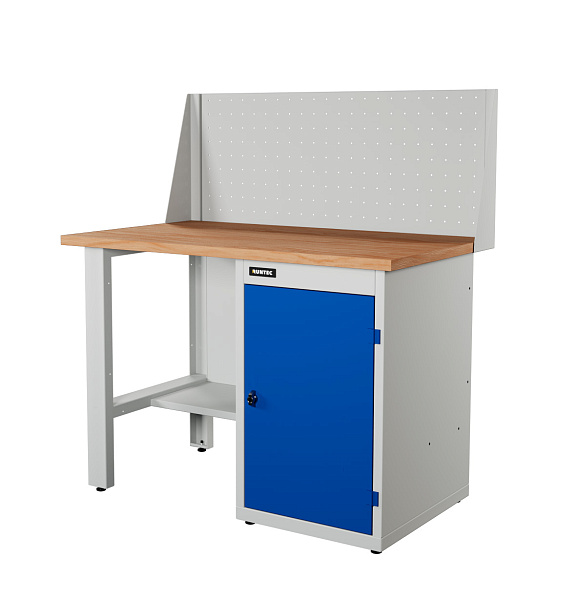 Верстак серии Industrial, 1200 мм, фанера, тумба с дверью, экран 500, синий (светло-серый) RAL 5005 (7035)