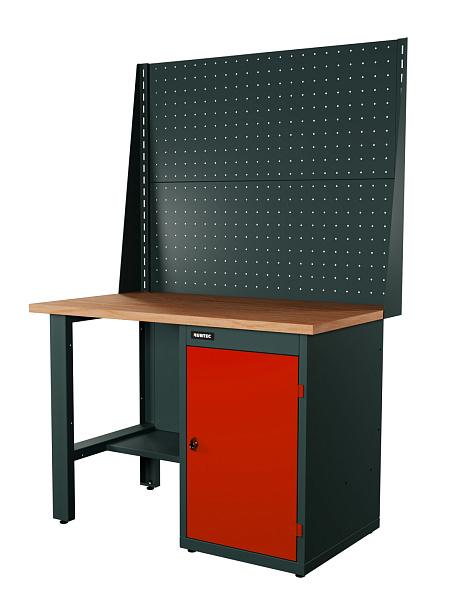 Верстак серии Industrial, 1200 мм, фанера, тумба с дверью, экран 1000, красный RAL 3020