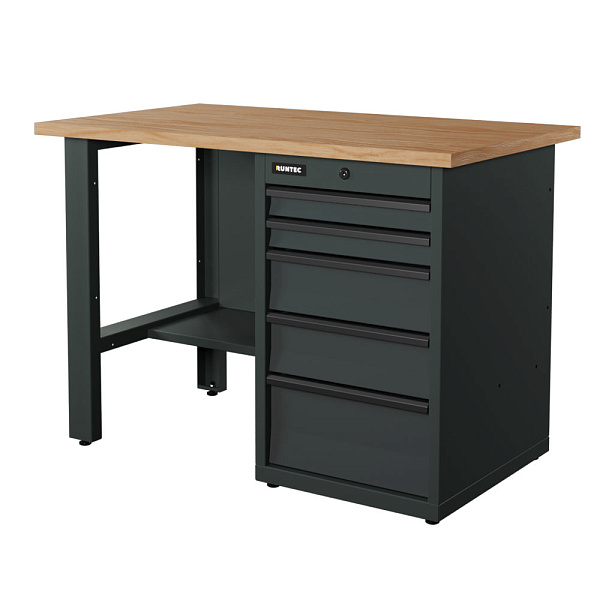 Верстак серии Industrial, 1200 мм, фанера, тумба с 5-ю ящиками, серый RAL 7016, RUNTEC, RTI12F-TI5-NI-7016