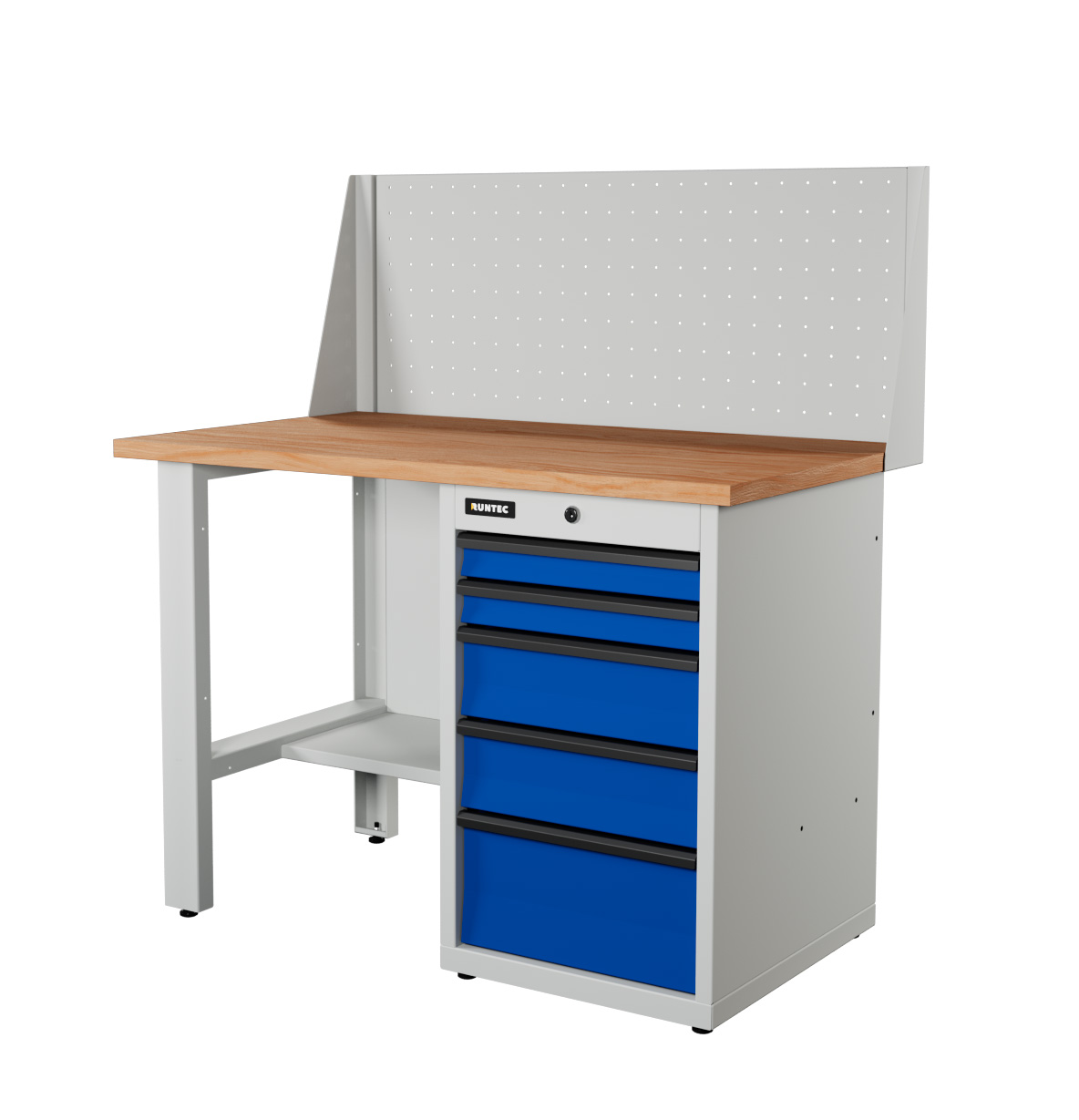 Верстак серии Industrial, 1200 мм, фанера, тумба с 5-ю ящиками, экран 500, синий (светло-серый) RAL 5005 (7035)