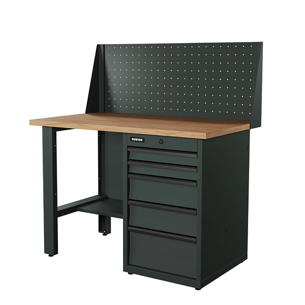 Верстак серии Industrial, 1200 мм, фанера, тумба с 5-ю ящиками, экран 500, синий RAL 5005