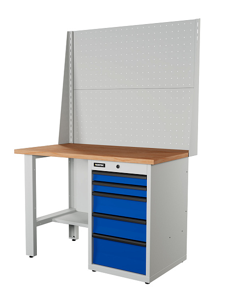 Верстак серии Industrial, 1200 мм, фанера, тумба с 5-ю ящиками, экран 1000, синий (светло-серый) RAL 5005 (7035), RUNTEC, RTI12F-TI5-NI-P12-P12-5005(7035)