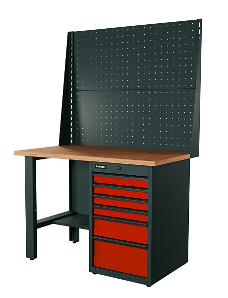 Верстак серии Industrial, 1200 мм, фанера, тумба с 6-ю ящиками, экран 1000, красный RAL 3020, RUNTEC, RTI12F-TI6-NI-P12-P12-3020
