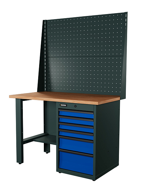 Верстак серии Industrial, 1200 мм, фанера, тумба с 6-ю ящиками, экран 1000, синий RAL 5005